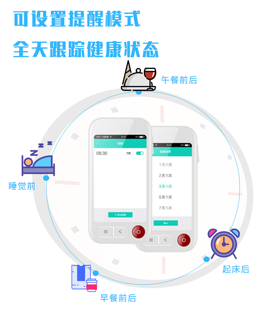 2、測(ce)量結果存儲雲端,實時微信(xin)通(tong)知,血糖數(shu)據分(fēn)享;